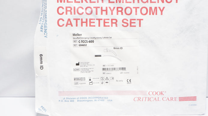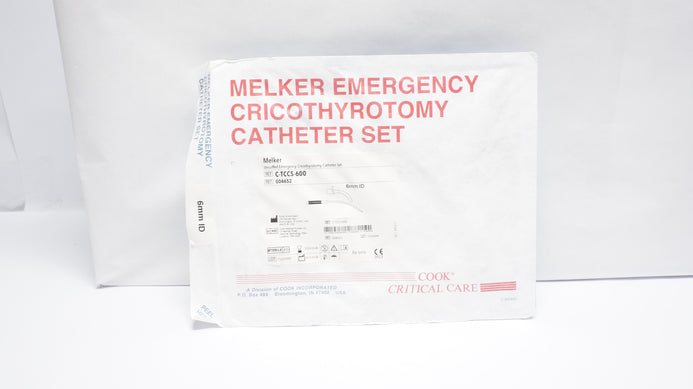 - Cook Medical G04652 Melker Uncuffed Emergency Cricothyrotomy Cath. Set 6mm ID