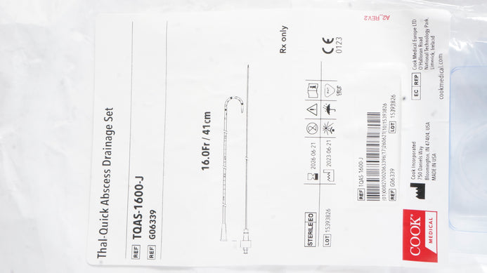 - Cook Medical G06339 Thal-Quick Abscess Drainage Set 16.0Fr x 41cm