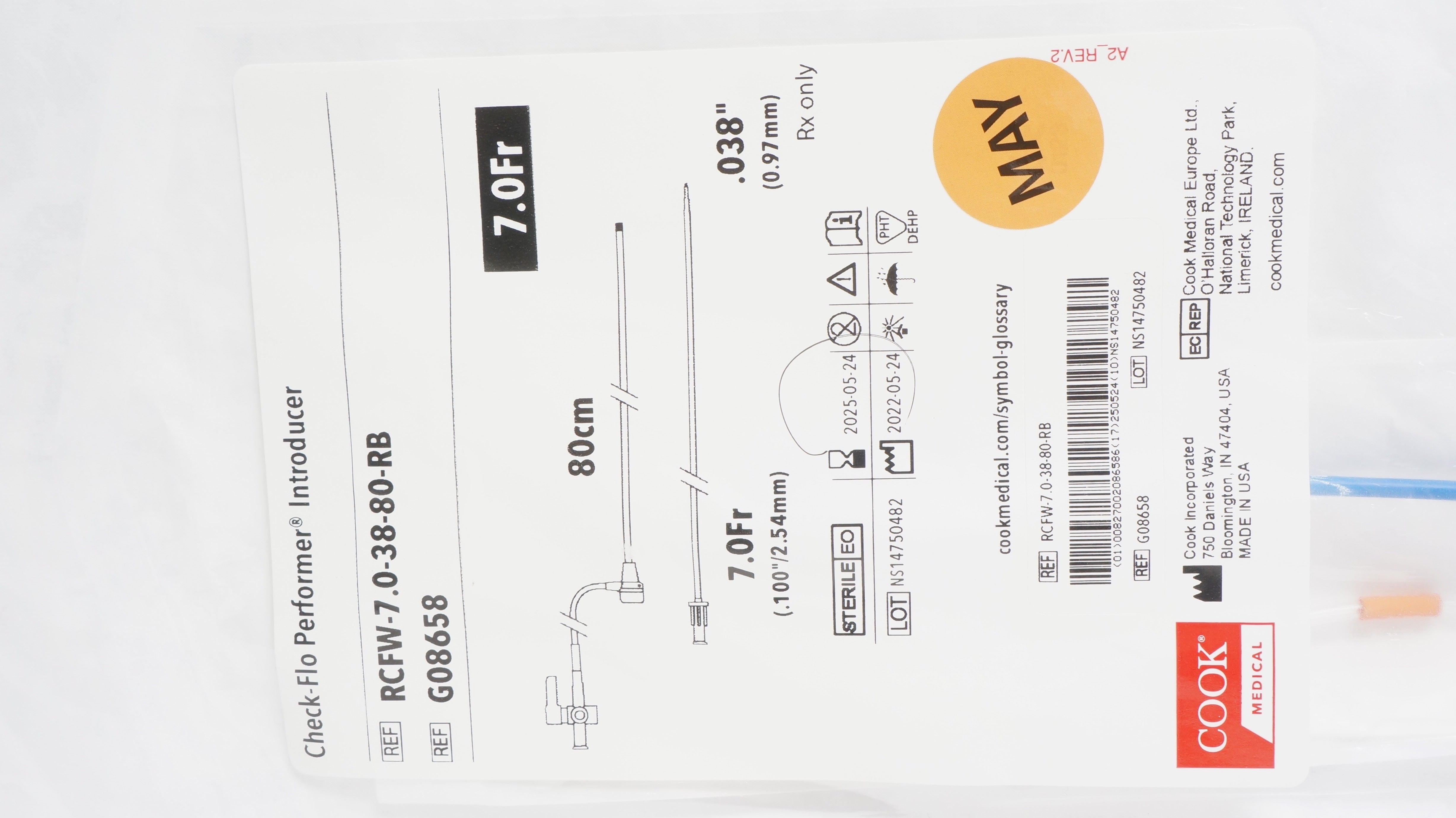 - Cook Medical G08658 Check-Flo Performer Introducer 7.0Fr x 80cm x .038In (x)