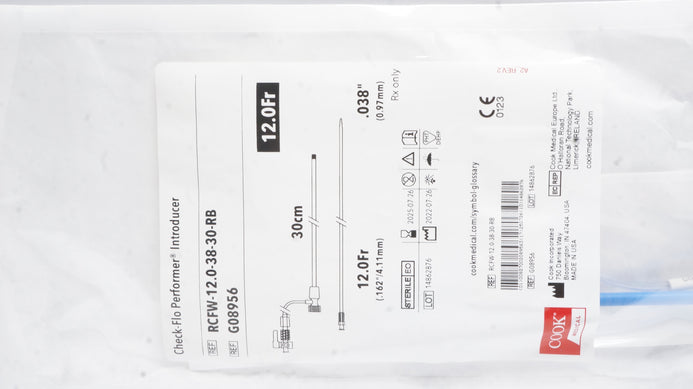 - Cook Medical G08956 Check-Flo Performer Introducer 12.0 Fr. x 30cm x .038in.