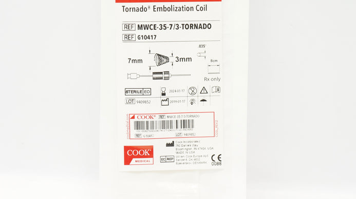 - Cook Medical G10417 Tornado Embolization Coil 7mm x 3mm x .035inch x 8cm (x)
