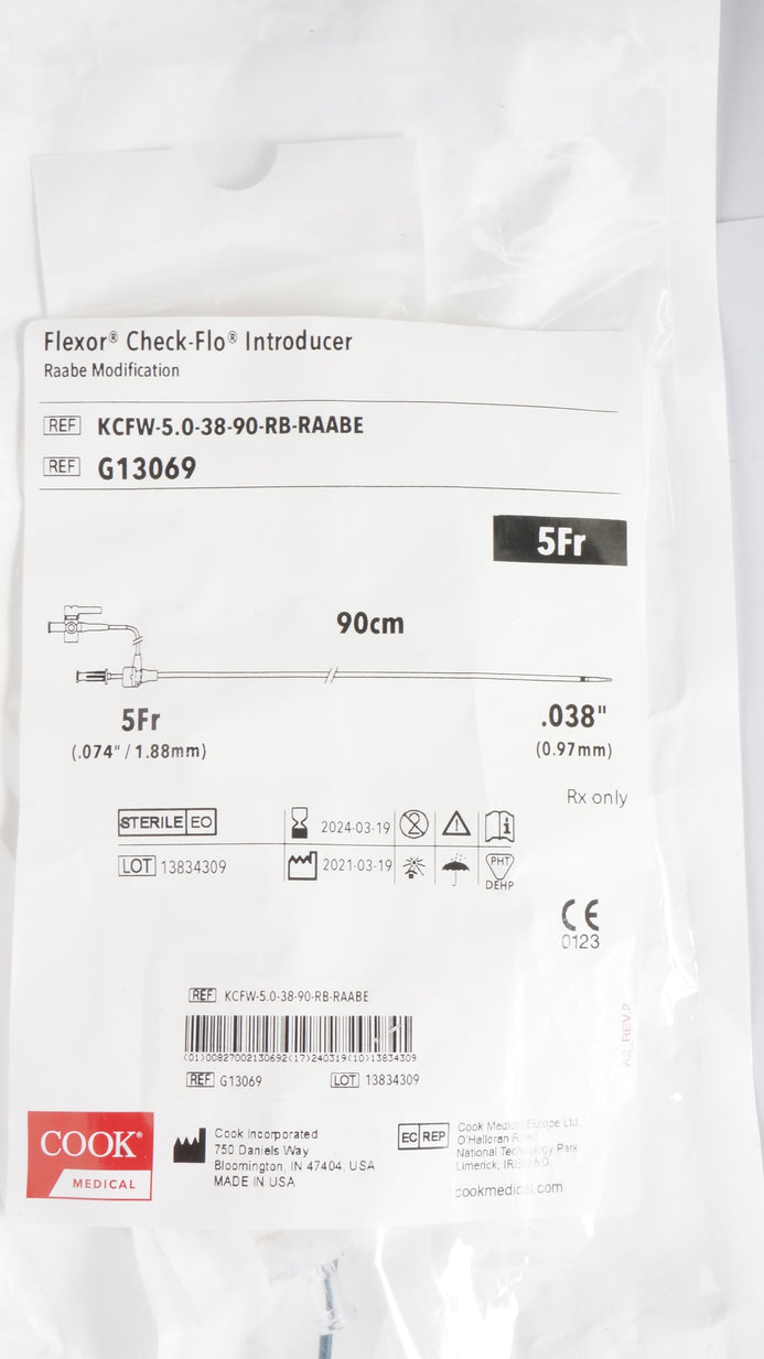 - Cook Medical G13069 Flexor Check-Flo Introducer 5Fr x 90cm x .038inch (x)