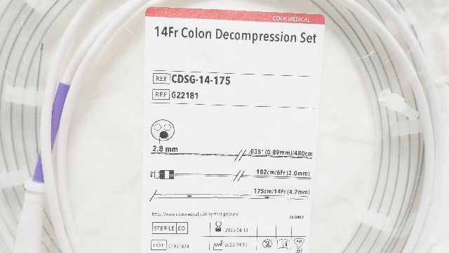 - Cook Medical G22181 Colon Decompression Set 14Fr .035inch x 182 x 175cm (x)