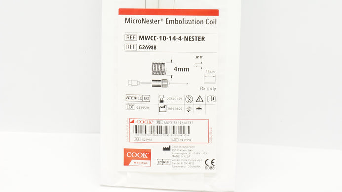 - Cook Medical G26988 MicroNester Embolization Coil 4mm x 14cm x .018inch (x)