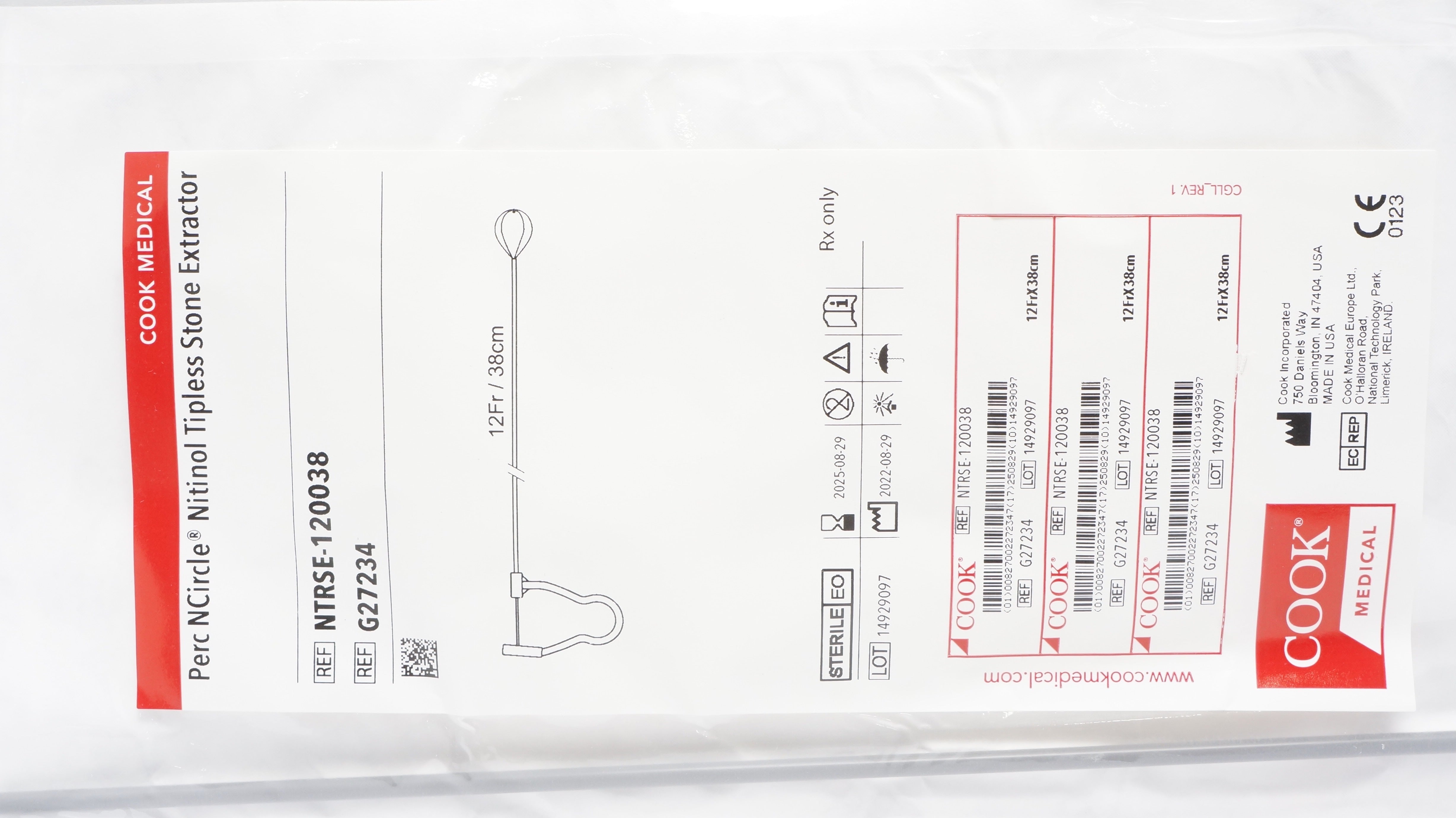 - Cook Medical G27234 Perc NCircle Nitinol Tipless Stone Extractor 12Fr/38cm (x)