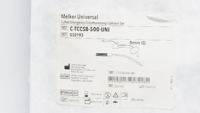 - Cook Medical G32193 Melker Universal Cuffed Emergency Cath. Set 5mm ID (x)