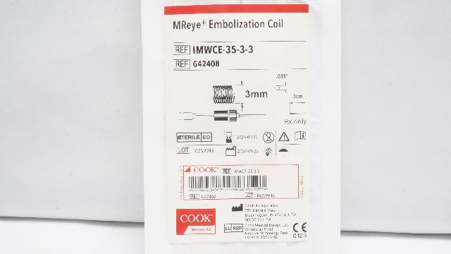 - Cook Medical G42408 MReye Embolization Coil 3mm x 3cm x 0.035inch (x)