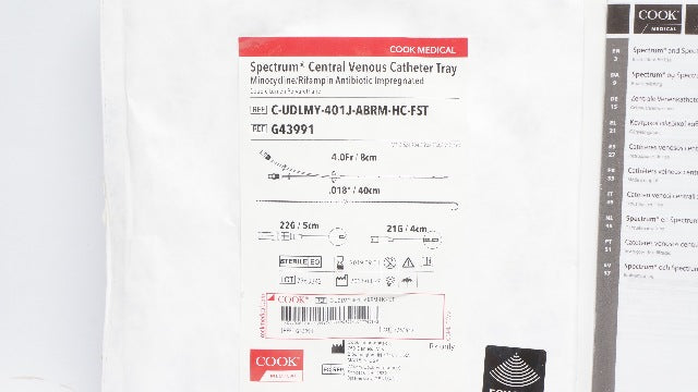 - Cook Medical G43991 Spectrum Central Venous Cath. Tray 4 Fr x 40cm (x)