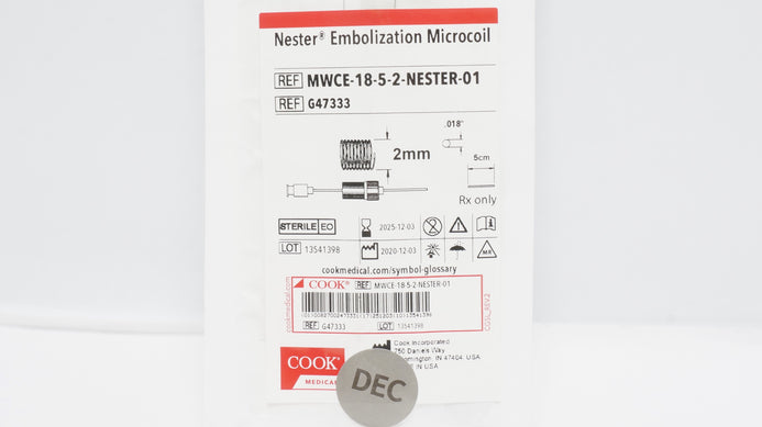 - Cook Medical G47333 Nester Embolization Microcoil 2mm x 5cm x .018inch (x)