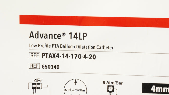- Cook Medical G50340 Advance 14LP Low Profile PTA Balloon Cath. 4mm x 20cm (x)