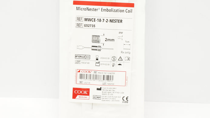 - Cook Medical G52735 MicroNester Embolization Coil 2mm x .018inch x 7cm (x)