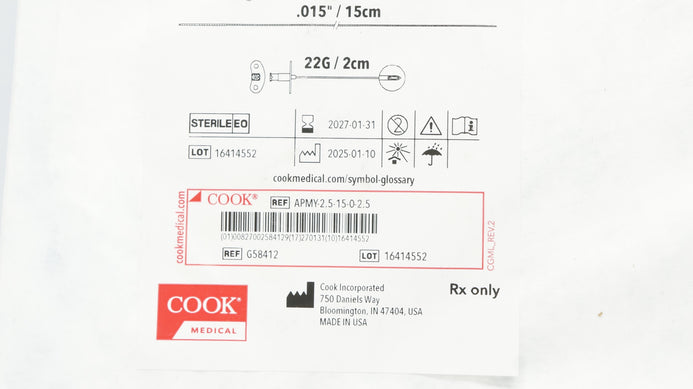 - Cook Medical G58412 Arterial Pressure Monitoring Tray 2.5Fr x .015In x 22G