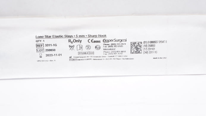 - Cooper Surgical 3311-1G Lone Star Elastic Stays 5mm Sharp Hook (x)