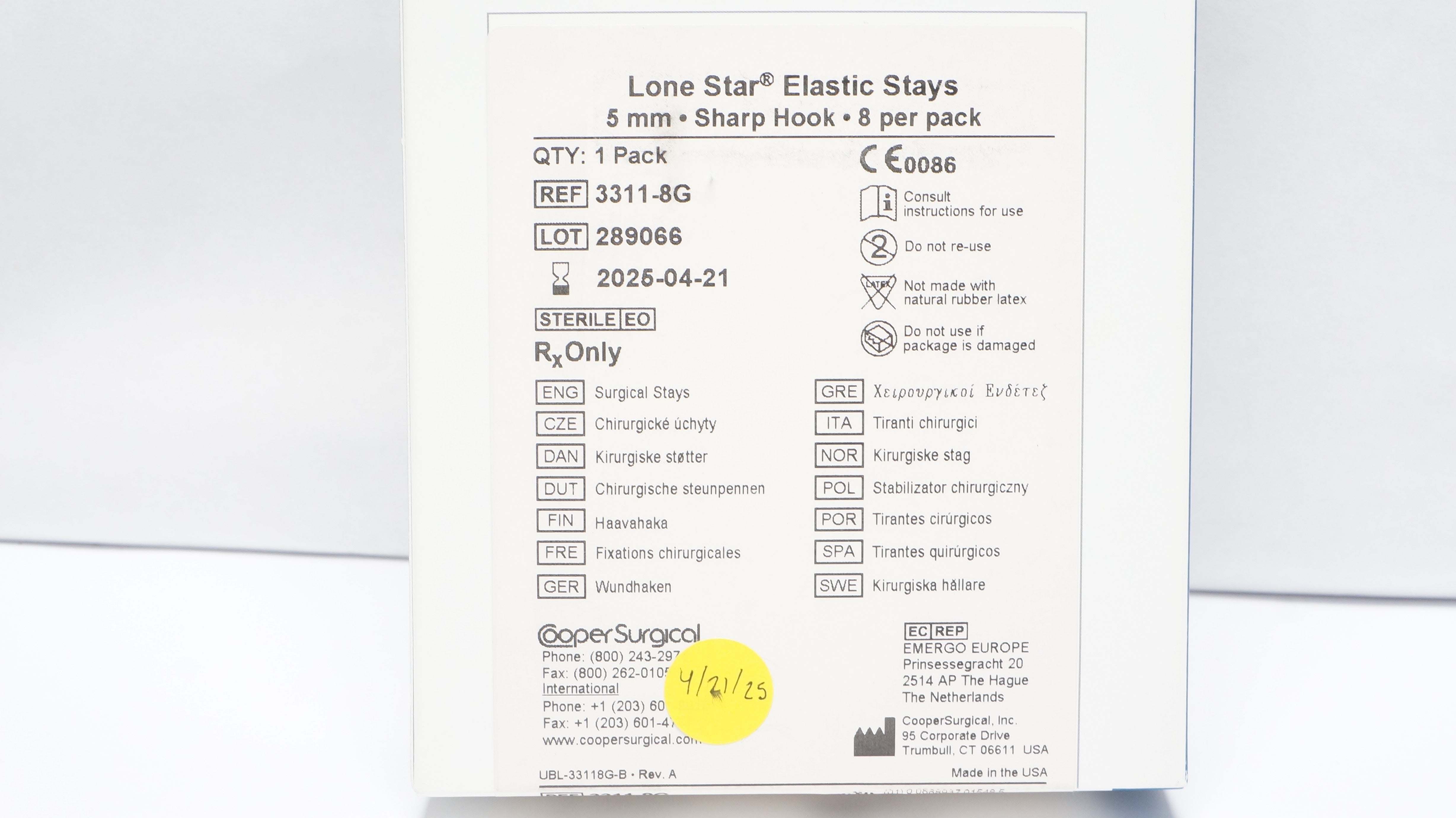 - Cooper Surgical 3311-8G Lone Star Elastic Stays 5mm, Sharp Hook (x)