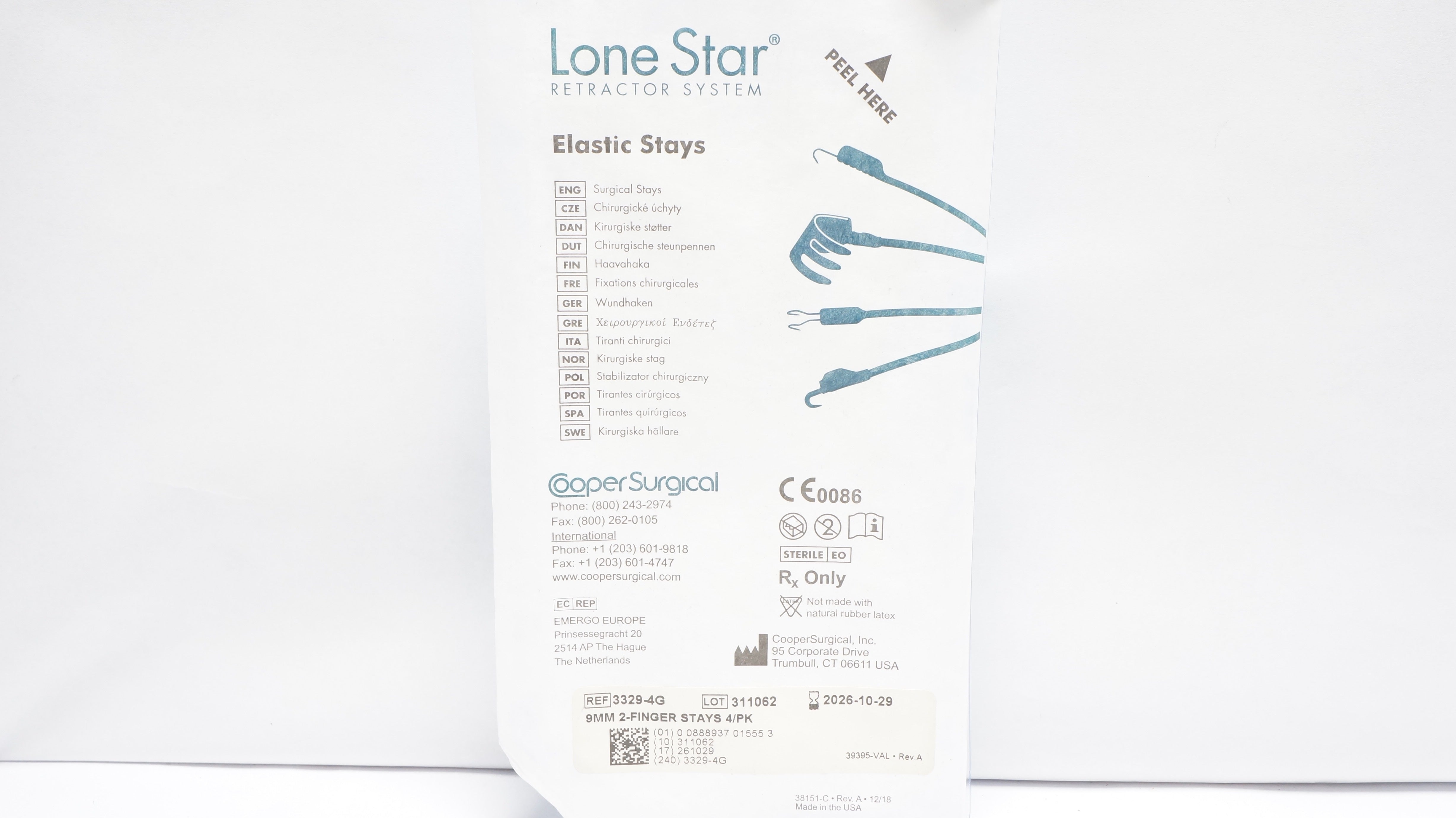 - Cooper Surgical 3329-4G Lone Star Elastic Stays, Sharp Hook 9mm - Pack of 4