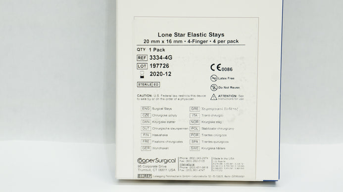 - Cooper Surgical 3334-4G Lone Star Elastic Stays 20x16mm 4-Finger (x) - Pack of 4