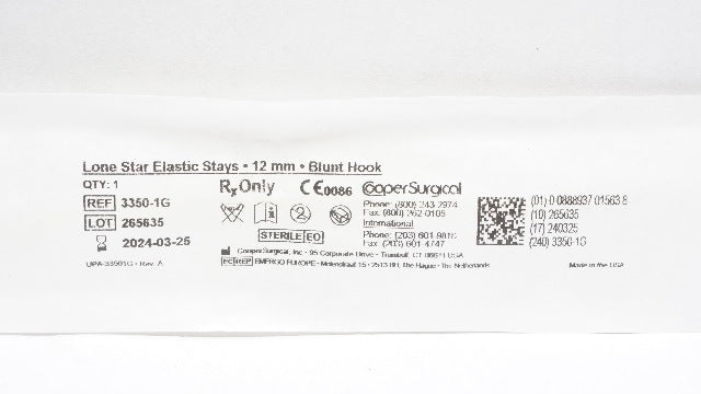 - Cooper Surgical 3350-1G Lone Star Elastic Stays 12mm Blunt Hook (x)