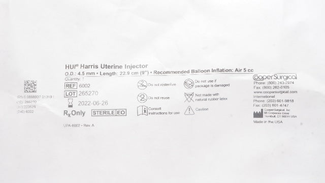 - Cooper Surgical 6002 HUI Harris Uterine Injector OD 4.5mm, Length 9inch (x)