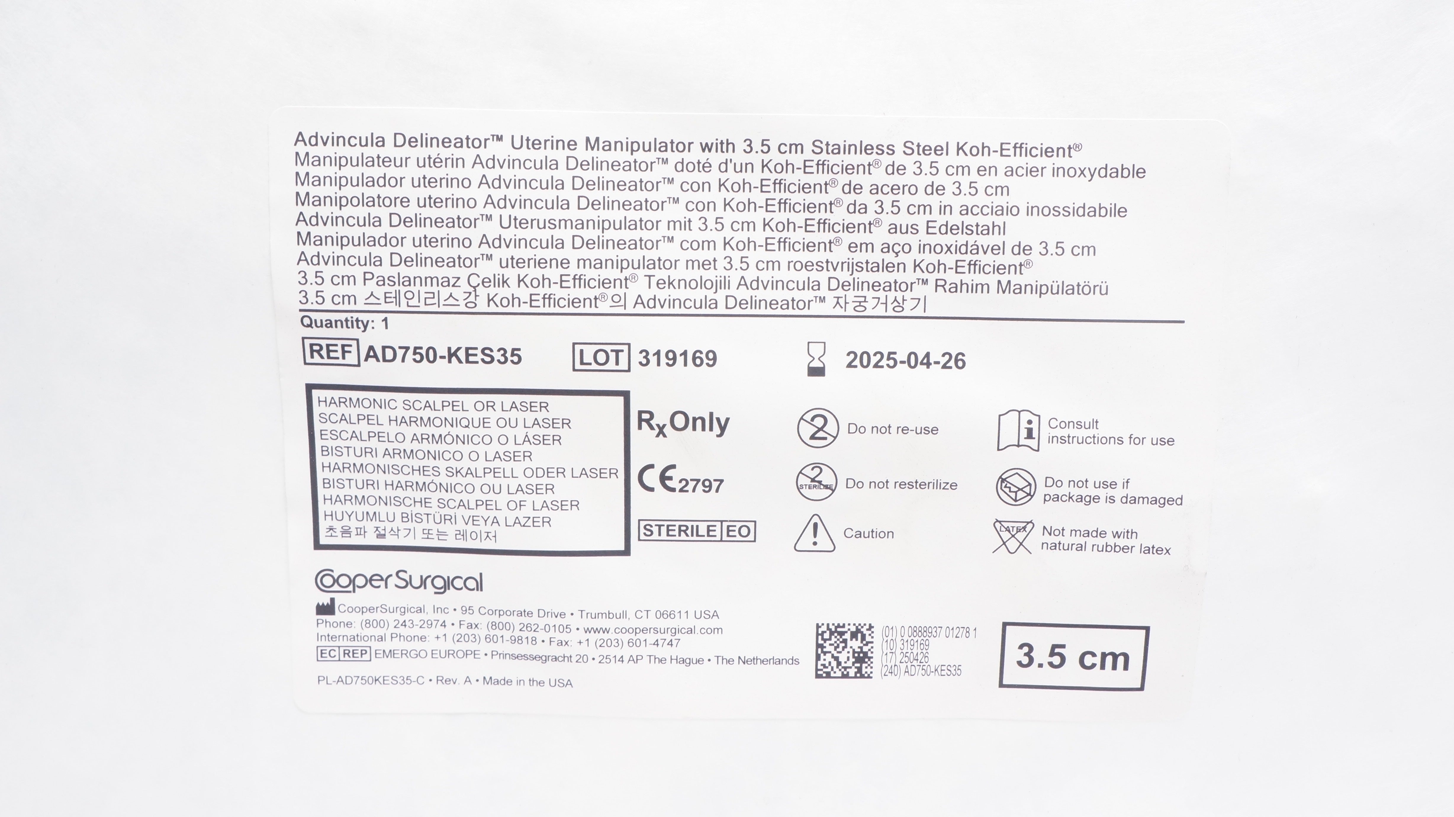 - Cooper Surgical AD750-KES35 Advincula Delineator Uterine Manipulator 3.5 cm (x)