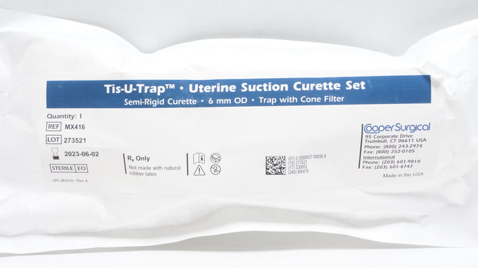 - Cooper Surgical MX416 Tis-U-Trap Uterine Suction Curette Set, 6mm OD (x)