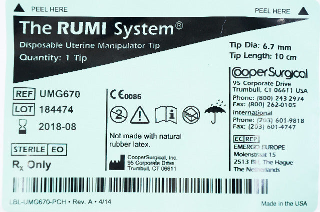 - Cooper Surgical UMG670 RUMI System Disposable Uterine Manipulator Tip 10cm (x)