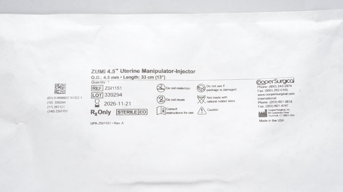 - Cooper Surgical ZSI1151 Uterine Manipulator-Injector 4.5mm x 33cm