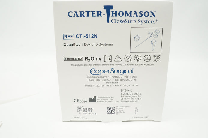 - CooperSurgical CTI-512N Puncture Closure Device Carter-Thomason CloseSure-Boxof5