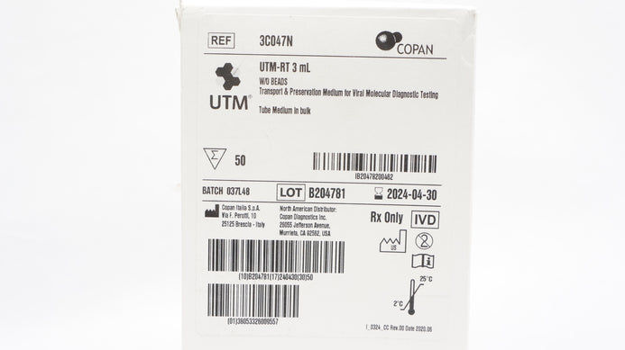 - Copan 3C047N UTM-RT 3mL Medium Tube W/O Beads (x) - Pack of 50