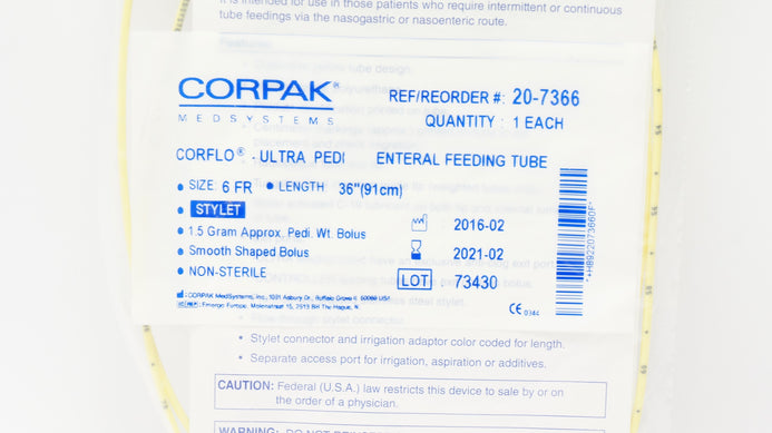 - Corpak Medsystems 20-7366 Corflo Ultra Pedi,Enteral Feeding Tube 6Fr x 36In (x)