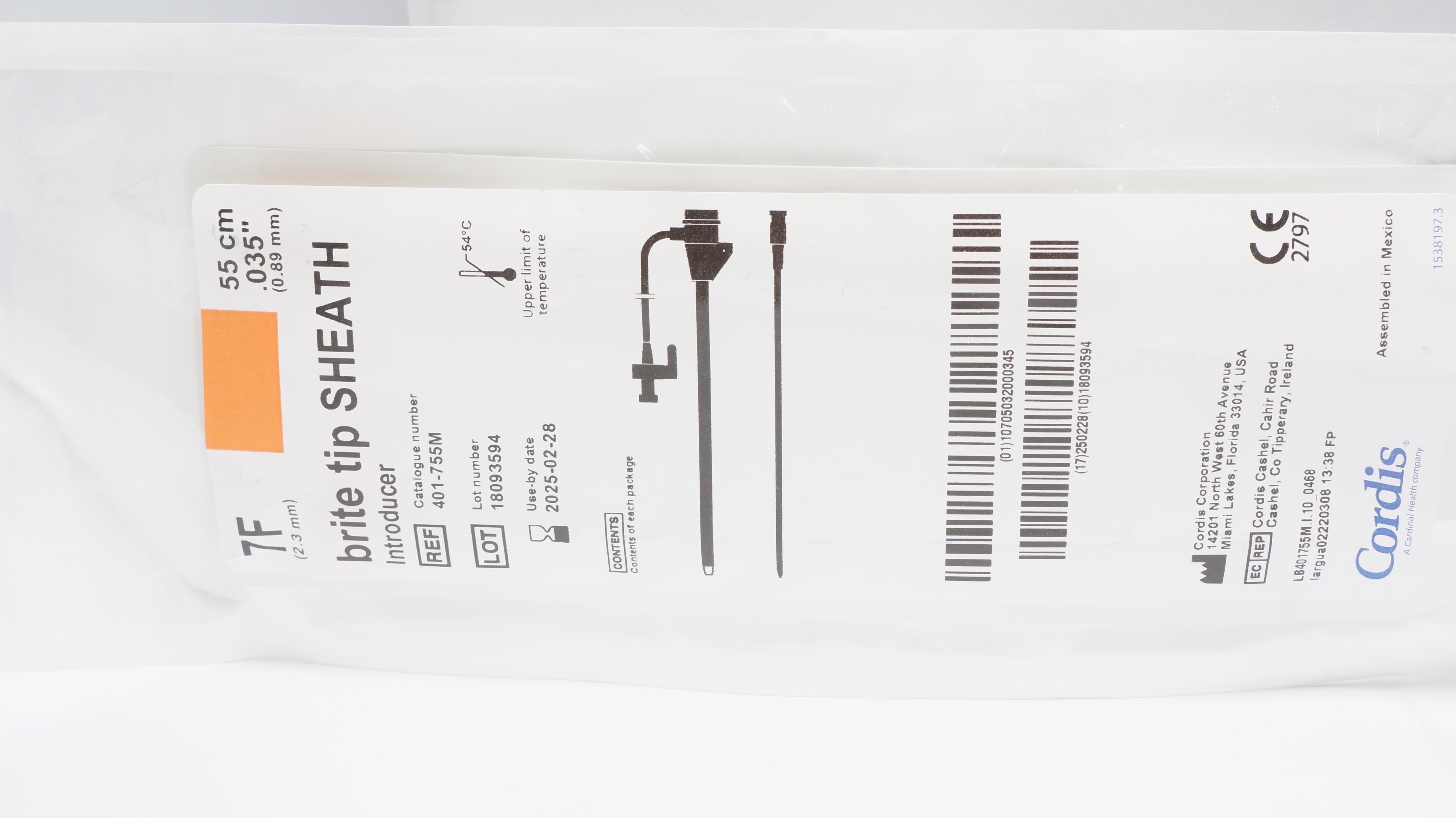 - Cordis 401-755M Brite Tip Sheath Introducer 7F x 55cm x .035inch (x)