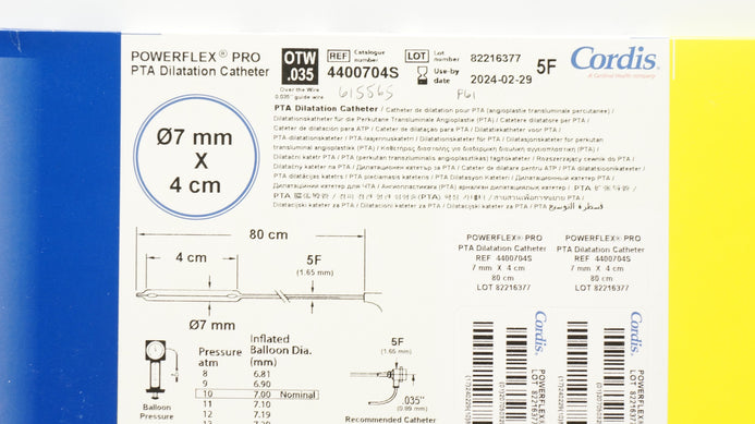 - Cordis 4400704S Powerflex Pro PTA Dilatation Cath. 5F,035 x 7mm x 4cm x 80cm (x)