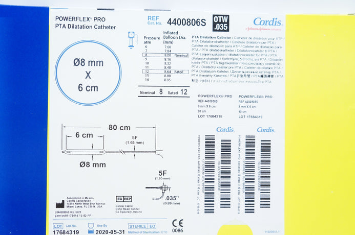 - Cordis 4400806S Powerflex Pro OTW 0.035inch PTA Dilatation Cath. 8mm x 6cm(x)