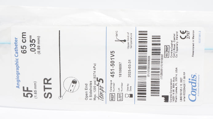 - Cordis 451-501V5 Angiographic Cath. STR 5 F x 65cm x .035in. (x)
