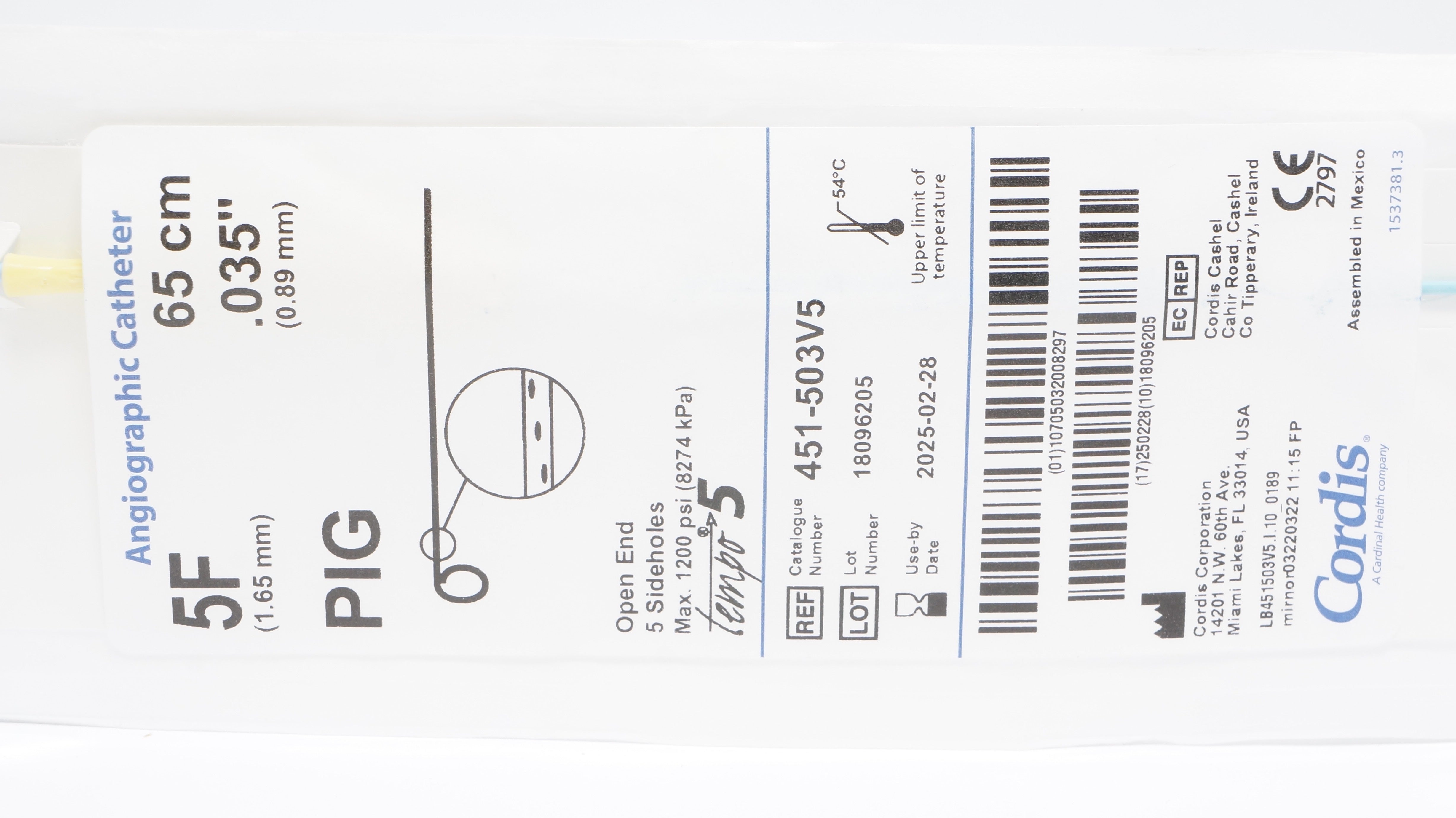 - Cordis 451-503V5 Angiographic Cath. 5Fx 65cm x .035In PIG Open End (x)
