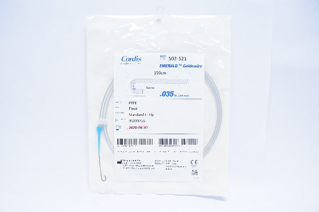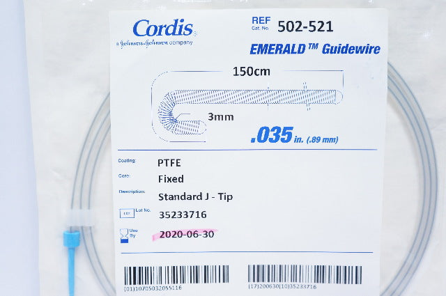 - Cordis 502-521 Emerald PTFE Guidewire, Standard, J-Tip 0.035inch x 150cm (x)