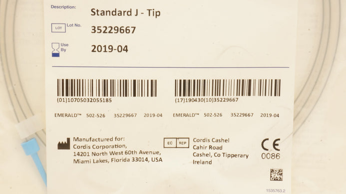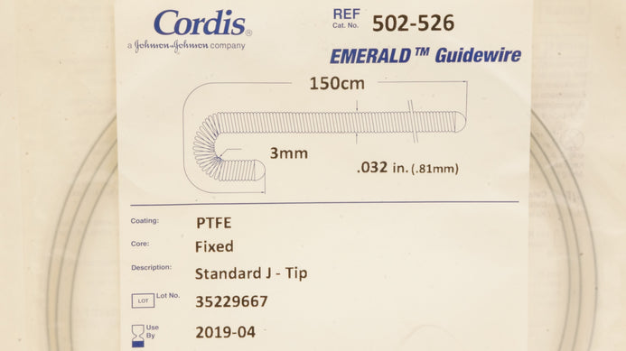 - Cordis 502-526 Emerald Guidewire Standard J-Tip 0.032inch x 3mm x 150cm (x)