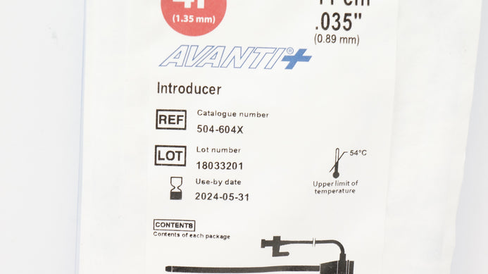- Cordis 504-604X AVANTI Plus Introducer 4F x 11cm x 0.035inch (x)
