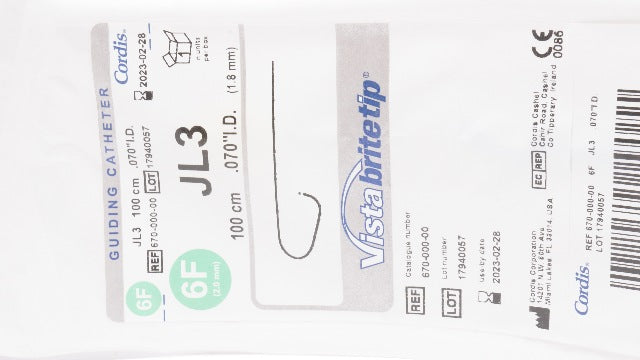 - Cordis 670-000-00 Vista Brite Tip Guiding Cath. JL3 6F x 100cm (x)