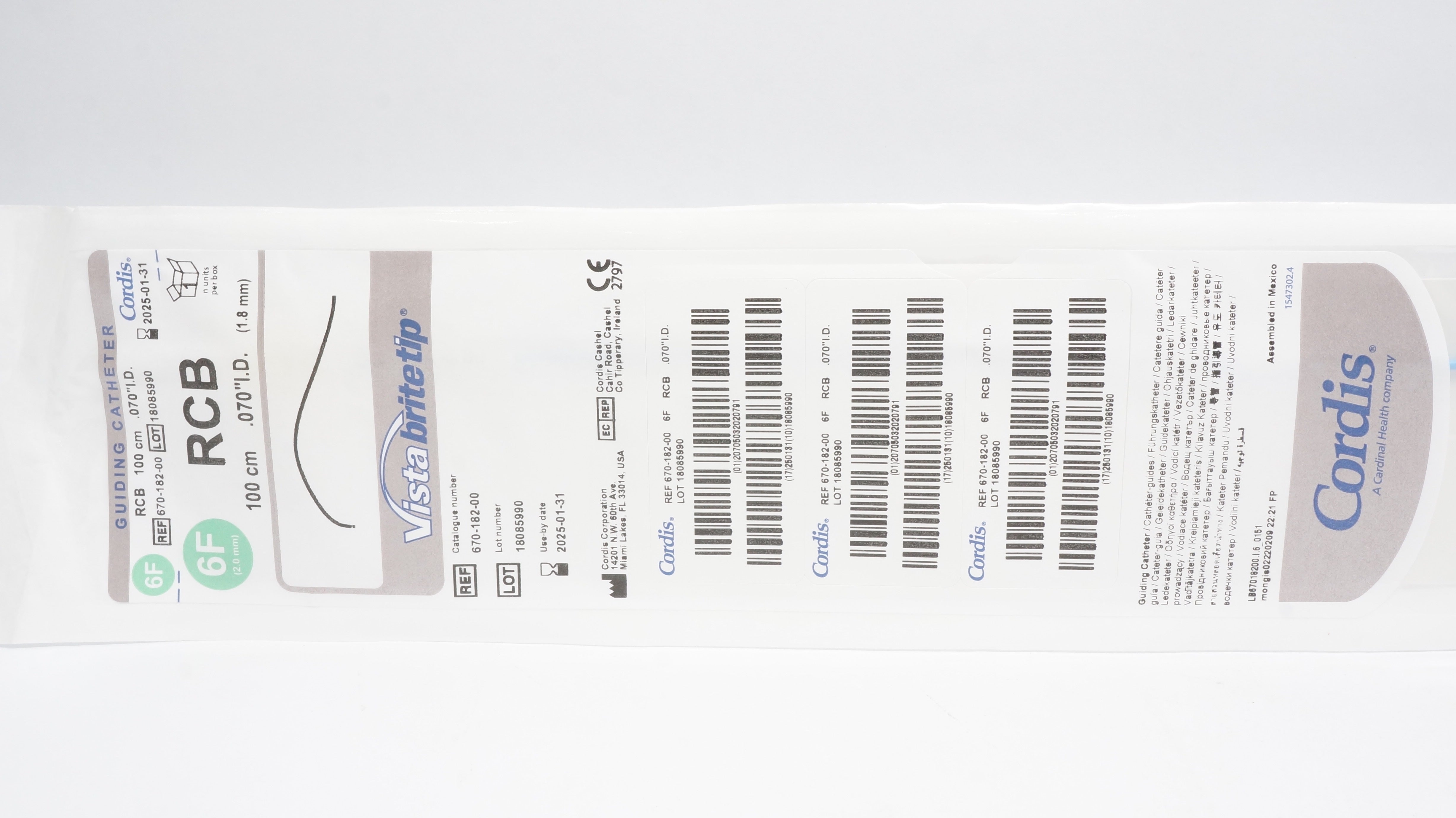 - Cordis 670-182-00 Vista BriteTip Guiding Cath. RCB 6F x 100cm x .070inch I.D.(x)