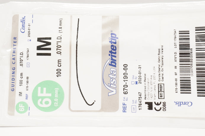- Cordis 670-190-00 Vistabritetip Guiding Catheter 6F IM x 100cm x .070inch (x)