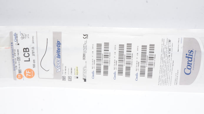 - Cordis 778-180-00 Vista Britte Tip Guiding Catheter 7F LCB 100cm x .078inch (x)