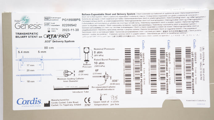 - Cordis PG1850BPS Genesis Transhepatic Biliary Stnt. 5mm x 18mm (x)