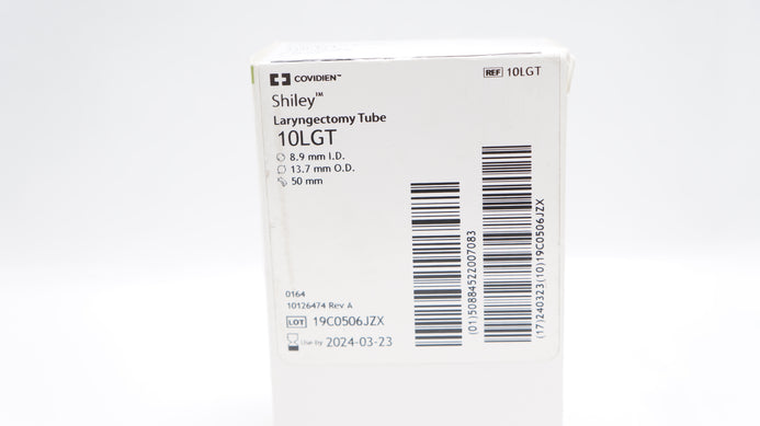 - Covidien 10LGT Shiley Laryngectomy Tube 8.9mm ID x 13.7mm OD x 50mm (x)