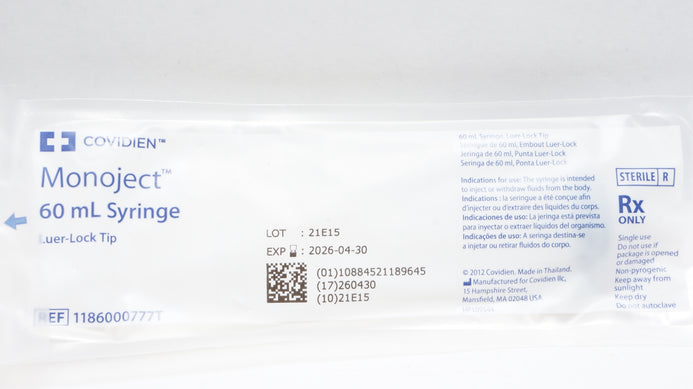 - Covidien 1186000777T Monoject 60ml Syringe Luer-Lock Tip