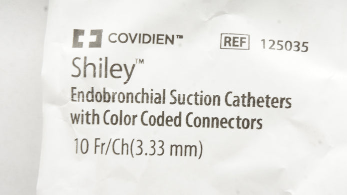 - Covidien 125035 Shiley Endobronchial Suction Caths. w/ Connectors 10Fr/Ch