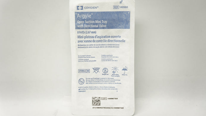 - Covidien 140988 Argyle Open Suction Tray With Directional Valve 8Fr/Ch