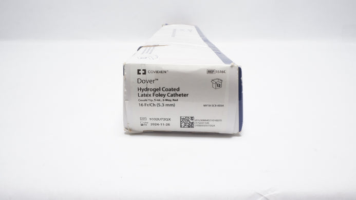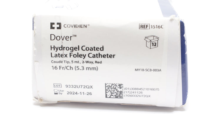 - Covidien 1516C Dover Hydrogel Coated Latex Foley Cath.16Fr/Ch 5mL - Box of 12(x)