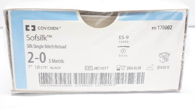 - Covidien 170002 2-0 Sofsilk Silk Single Stitch Reload ES-9 9mm 7in(x)-Box of 12
