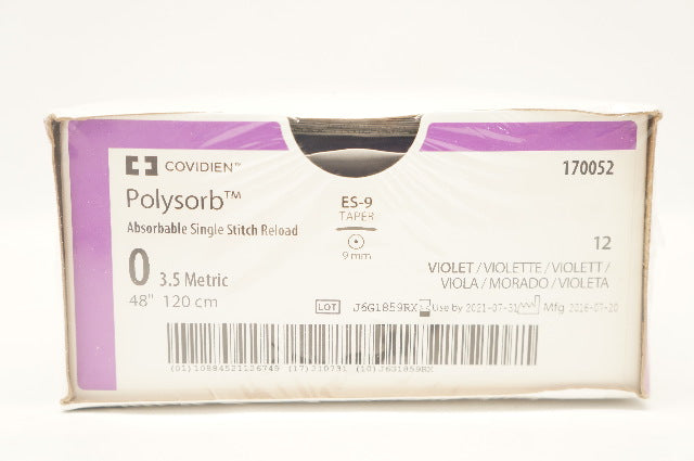 - Covidien 170052 0 Polysorb, Stitch Reload, ES-9 Taper 9mm 48inch (x) - Box of 12
