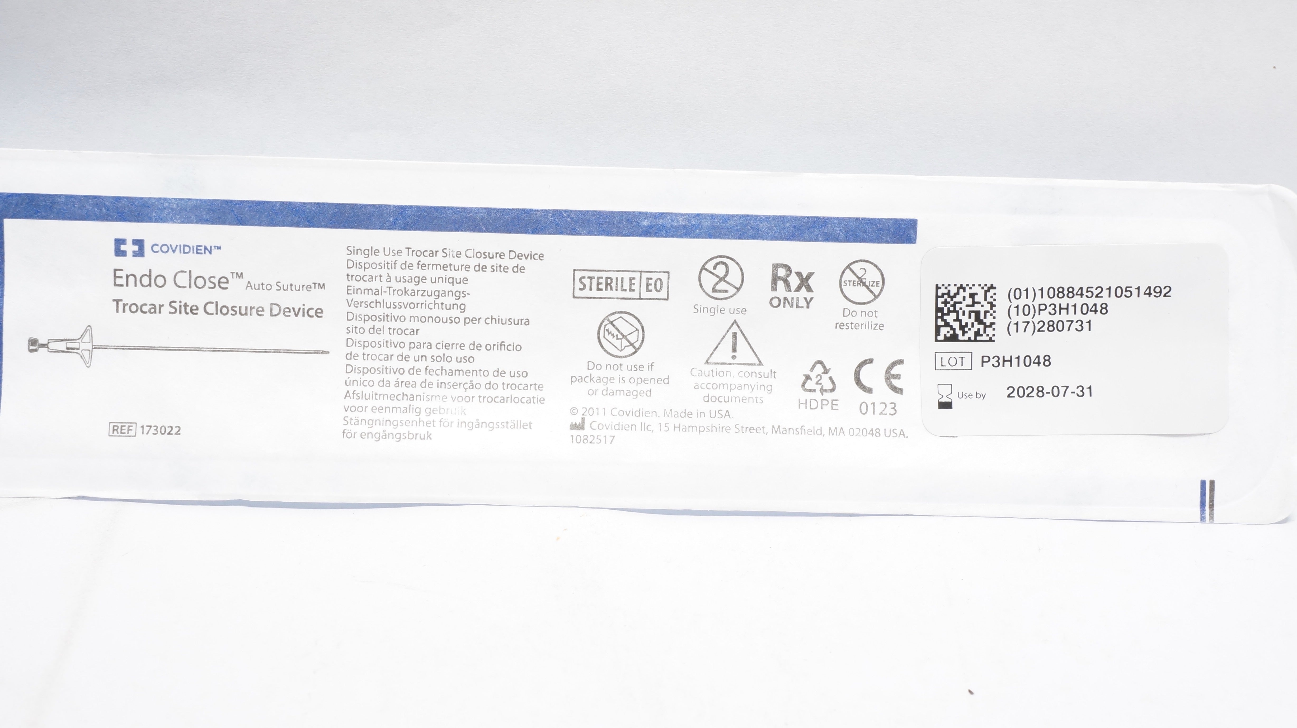- Covidien 173022 Endo Close Trocar Site Closure Device